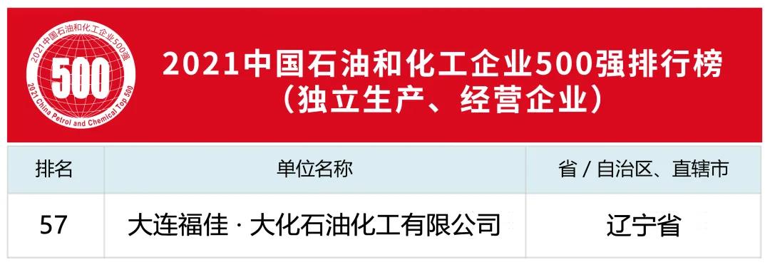 11月29日,2021中國石油和化工企業(yè)500強發(fā)布會暨雙循環(huán)新格局下石油化工大企業(yè)的機遇與挑戰(zhàn)高峰論壇和大連市石化產(chǎn)業(yè)推介會網(wǎng)絡(luò)視頻會議在線上舉行。福佳集團榮獲2021中國石油和化工企業(yè)500強排行榜綜合類企業(yè)第40位,大連福佳•大化石油化工有限公司榮獲獨立生產(chǎn)、經(jīng)營企業(yè)第57位。